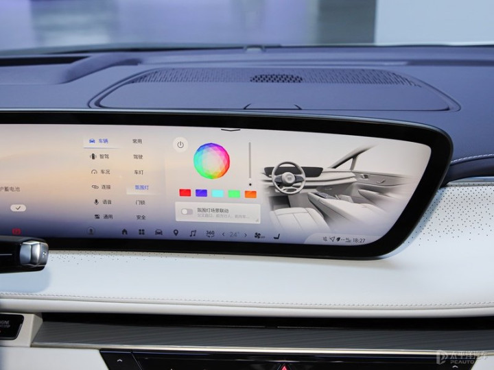 内饰方面,全新别克GL8陆尊同样延续现款车型设计,采用30英寸一体式双联屏布局,配备四辐式多功能方向盘和怀挡式换挡机构,新增名为“霞紫月白”的全新车内双拼配色,提供可自选色彩和光效的128色流光氛围灯。